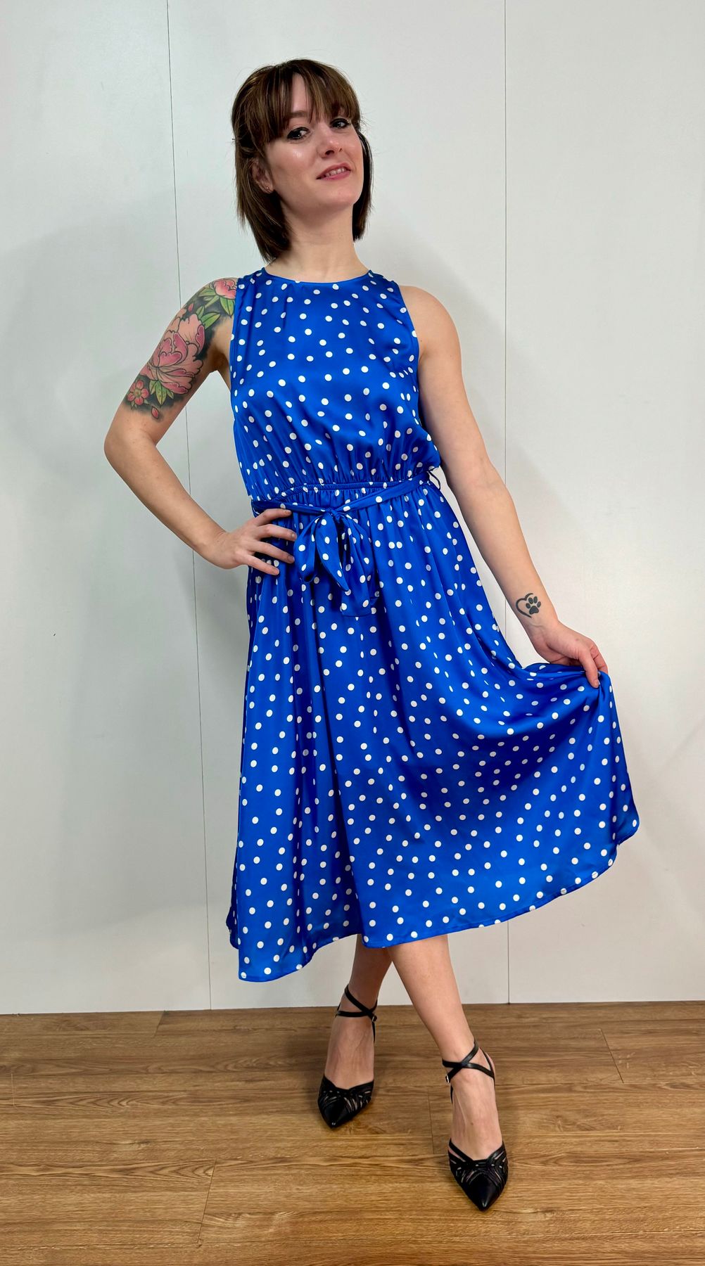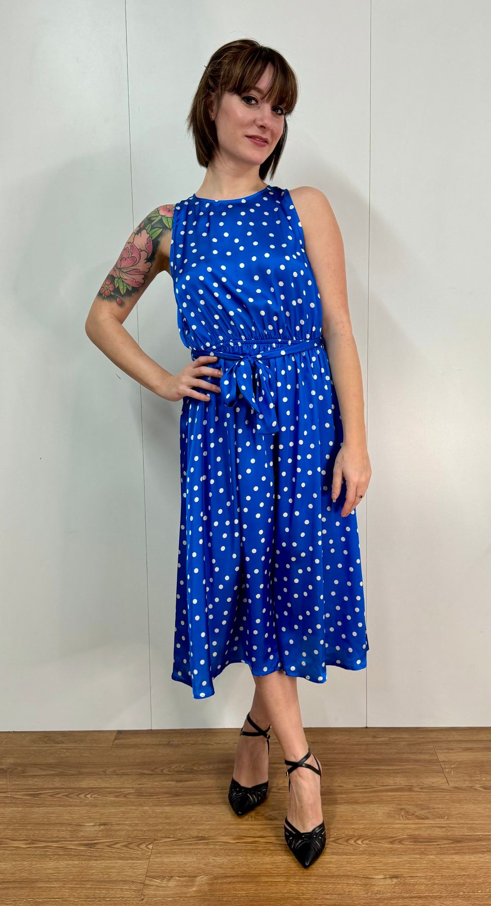 L'articolo Abito Smanicato Raso Pois Kartika è stato aggiunto al carrello