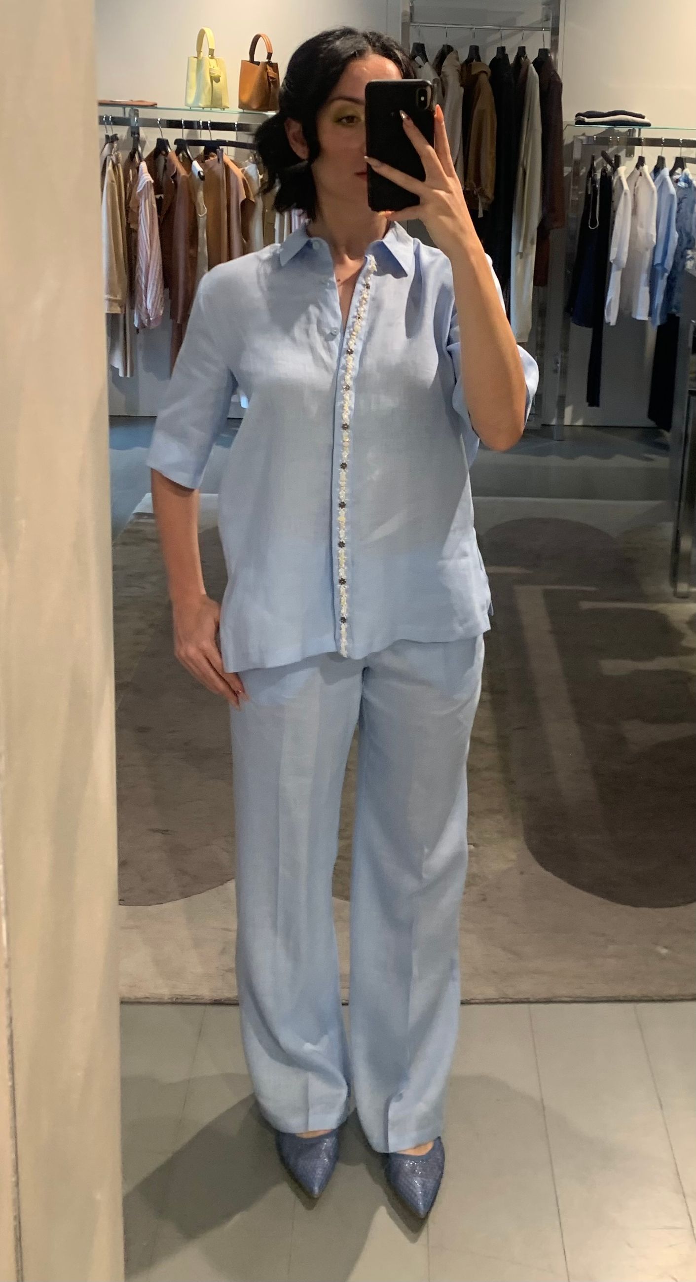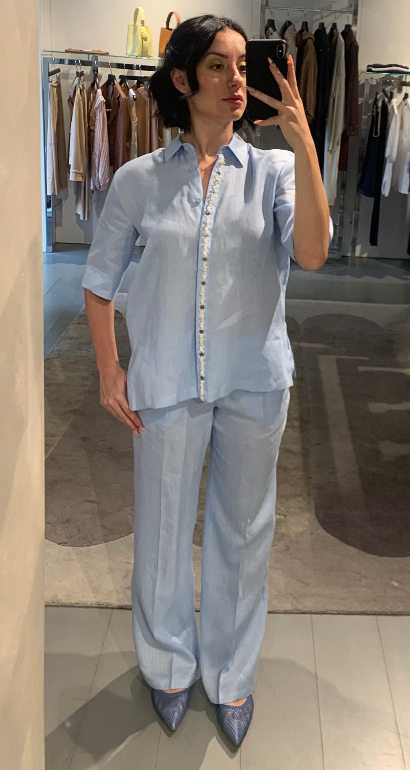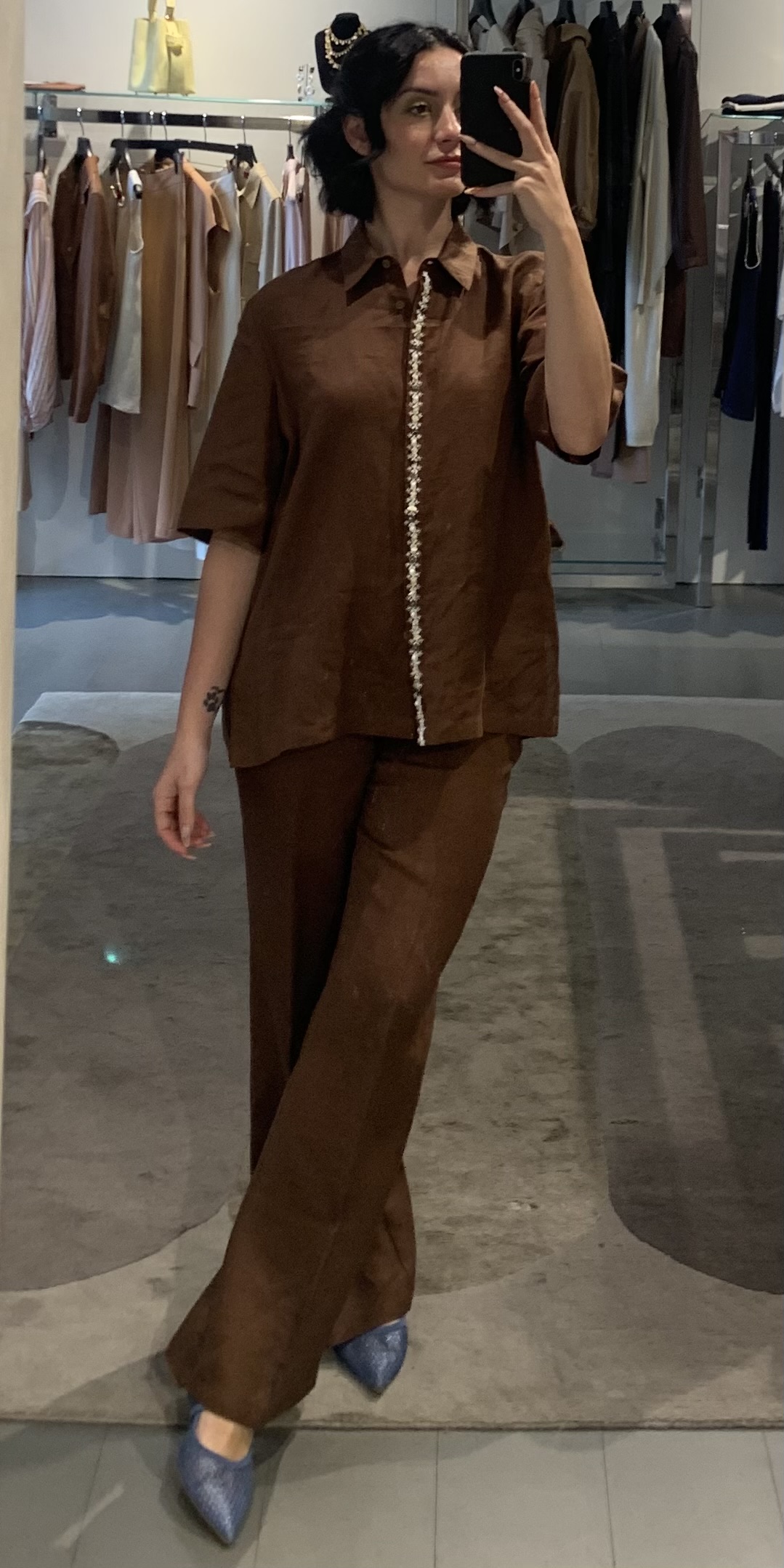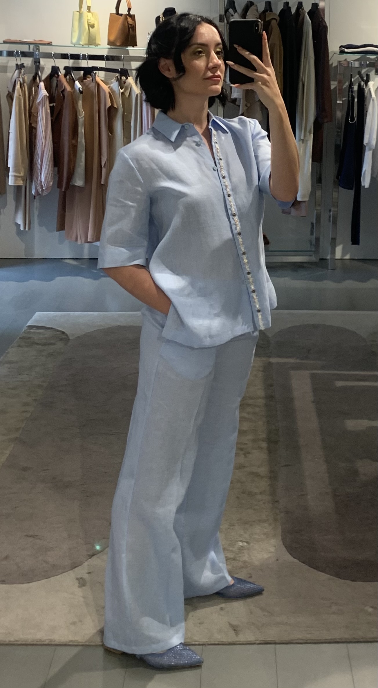 pantaloni larghi in lino