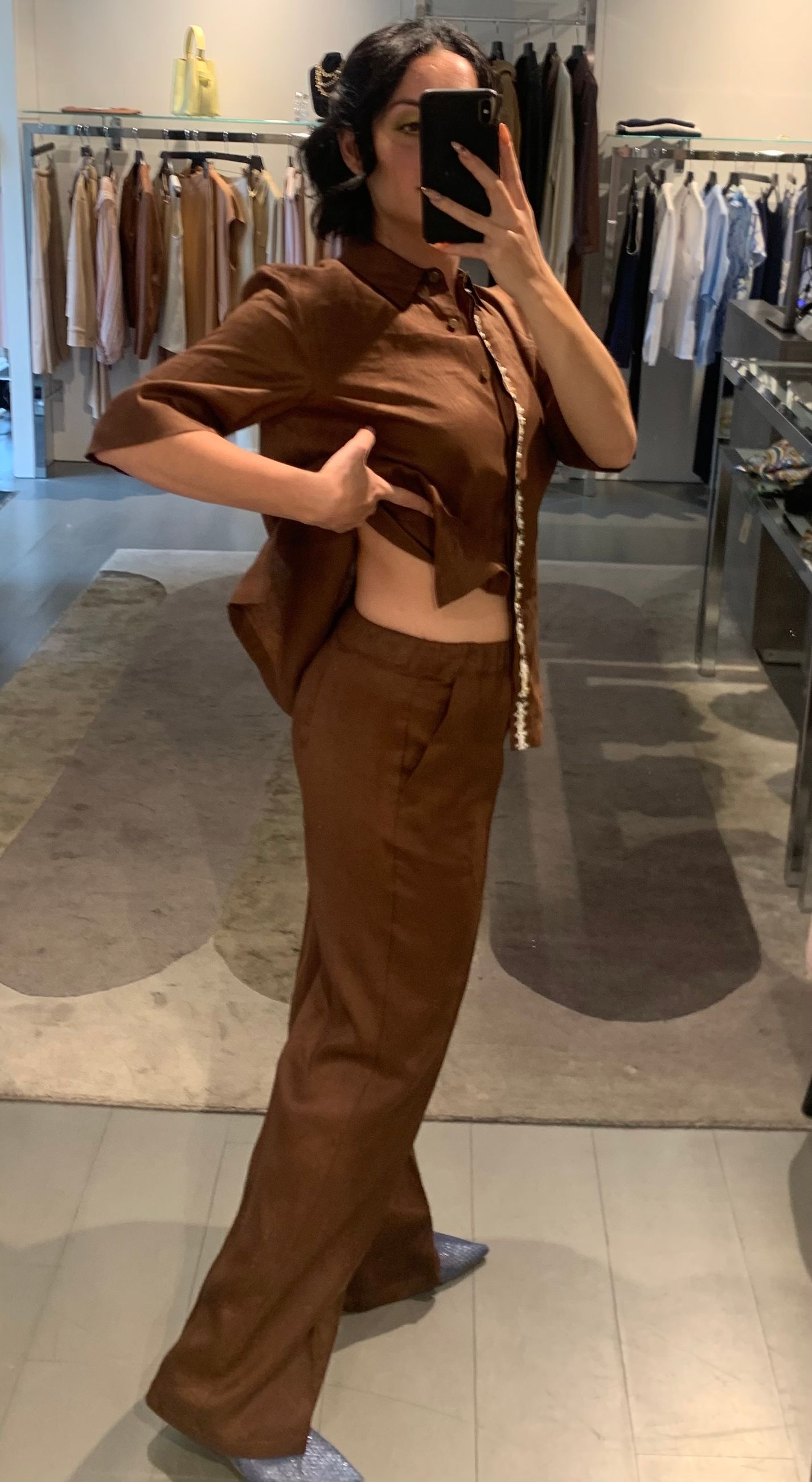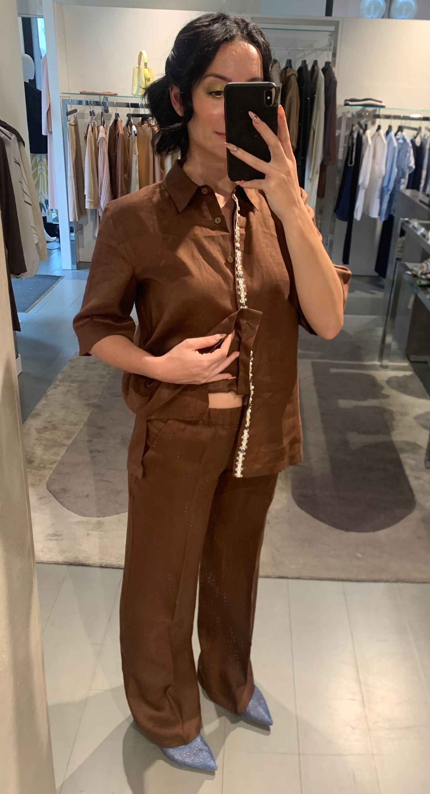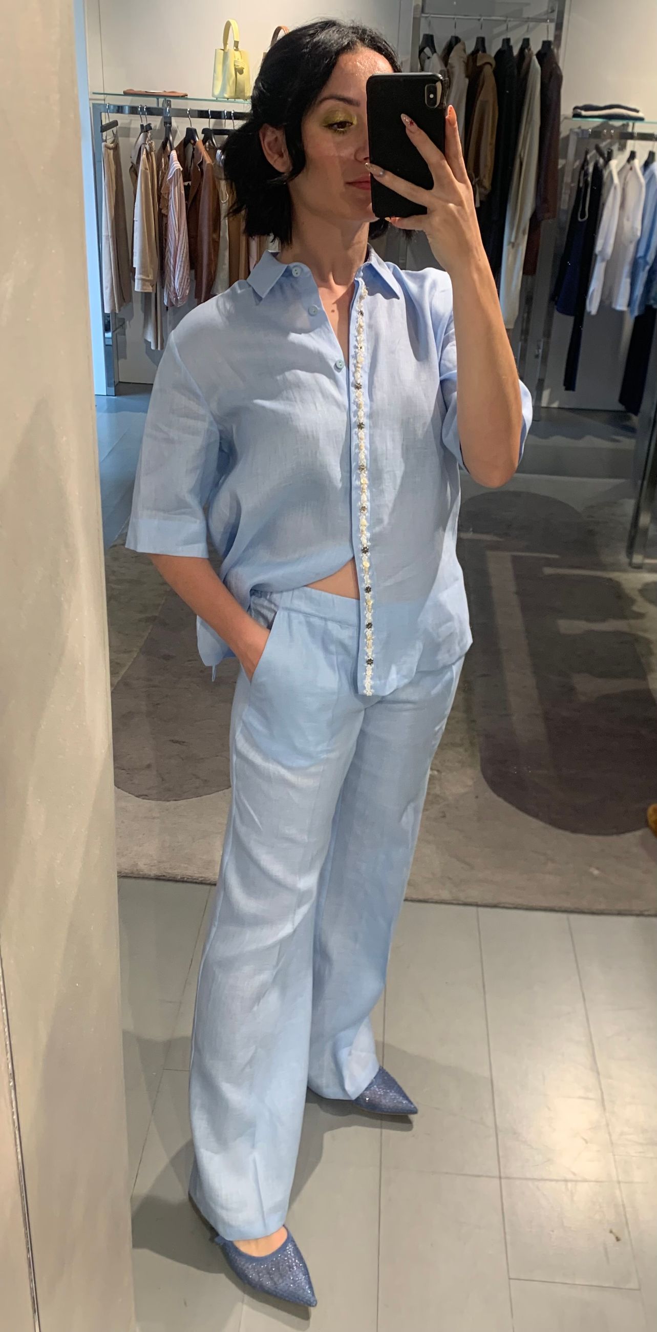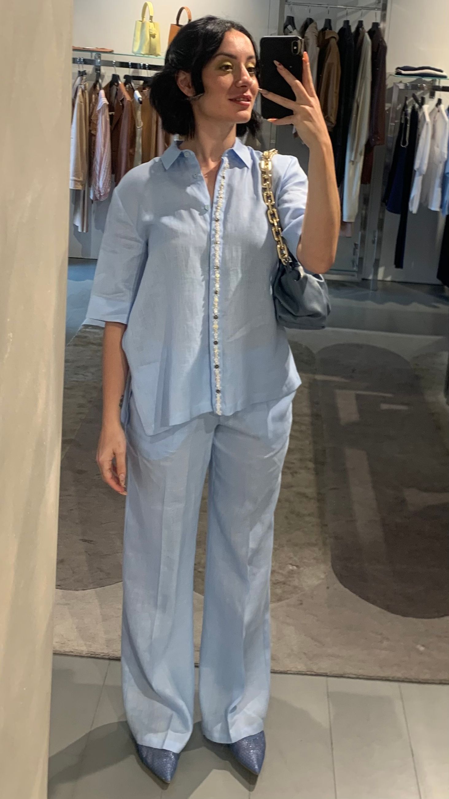 pantaloni larghi in lino